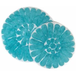 This two-piece bath rug set by Chesapeake Merchandising with a bold floral design will be sure to add a burst of color to your home! Your bathroom decor will take on a fun and whimsical tone with the addition of these Bursting Flower rugs. This bath rug set comes in a circular design that is accented with a raised floral design with a pop of color that is eye-catching. The aqua coloured flower sits on a fresh white background for a high level of contrast.