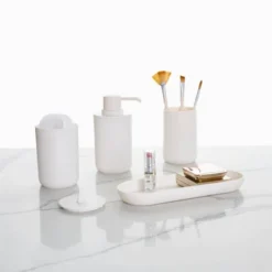 - IDesign 4-Piece Recycled Plastic Bathroom Accessory Set, The Cade Collection – 9.75″ x 4.125″ x 6.5″, Coconut