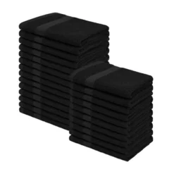 Bring a pop of color to your bath or shower with the Deckelman Eco-Friendly 24-Piece Face Towel Set. This bundle features festive eco-friendly colors accented with a chunky chevron border which makes them soft and absorbent to get you warm and dry. Crafted from premium Cotton fibers, these towels are soft to the touch and combine hard-wearing properties that will withstand countless washes and get even softer over time. Each set includes 24 face towels. Instantly update the look of your master or guest bath with these plush, colorful towels.