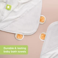 Made with premium quality 500 GSM fabric and featuring a large size of 35” x 35″, our baby hooded towel is the perfect bath essential for newborns and toddlers. The baby bath towel is ultra-soft and highly absorbent, catering to all skin types, including sensitive skin. Each baby towel set comes with an adorable hood, which helps in keeping your little one warm and cozy after their bath. The baby hooded bath towel for girls and boys is machine washable, dryer friendly and great for gifting.