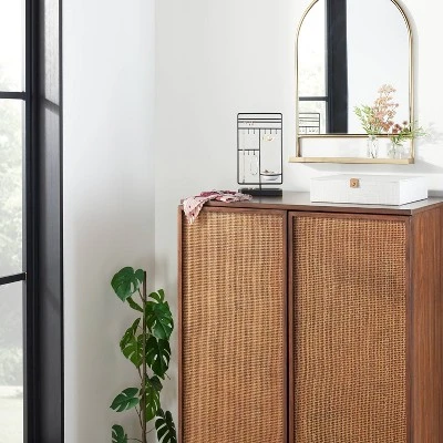 You’ll find all your jewelry conveniently in one spot when it’s organized with this Jewelry Organization Stand from Hearth & Handâ„¢ with Magnolia. Set atop a rectangular base that works as a tray, this jewelry organizer features a top with multiple hooks that offer plenty of space for your earrings, necklaces and more. It’s made with metal in a matte black finish for easy integration with most of your decor styles. Place this matte black jewelry organizer stand on top of the dresser and hang an arched mirror on the wall to create a complete setup for getting ready for the day.