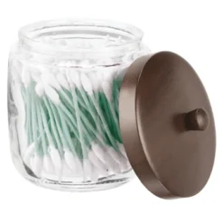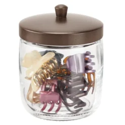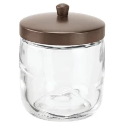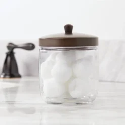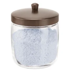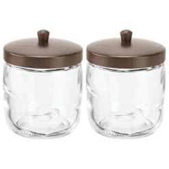 Keep cosmetics and other daily essentials organized on your bathroom vanity or a dresser top with the Bathroom Vanity Storage Organizer Canister from mDesign. Use these jars for everything from cotton balls and swabs to cosmetic wedges, makeup swabs, bath salts, bath bombs, small soaps. beauty supplies and more. The classic styling and decorative lids add a touch of class anywhere they are used.