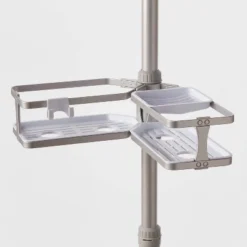 Keep small accessories or hair and skincare products neatly organized with this Terrazzo Bathroom Tray from Threshold™. This rectangular bathroom tray is made with terrazzo material that creates a unique appearance, with chips of green, blue, gray and light-blue poured together with a white material to create a sleek, modern look. The raised edges help keep your small items or bottles contained, while the smooth design is easy to clean to keep it looking fresh.