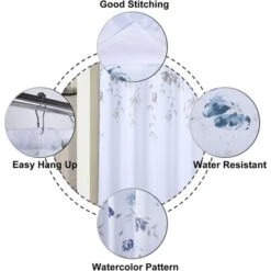 1. PREMIUM QUALITY: Our shower curtain is made of heavy-weight canvas fabric construction, soft hand feel, durable and thick material. A luxury and spa-like feel is delivered when showering or bathing. 2. STYLISH DESIGN: Our shower curtains with floral leaf patterns allow you to enjoy nature in the bathroom, suitable for a variety of bathroom decoration styles. Like an ink painting, colorful flower design gives a sense of elegance, making a graceful and chic appearance to any space. 3. SERVE WELL: Crafted with premium fabric provides perfect privacy and ensures long-last use and durability. The shower curtain is treated to water resistant and dries quickly. Use state of the art digital printing technology that allows vibrant colors and clear images to be preserved. 4. GOOD STITCHING: Reinforced top header with 12 button holes prevents from tearing and promotes the shower curtain long lasting. Reducing curtain billowing, its weighted hem ensures its longevity and keeps your curtain in place. 5. EASY CARE: Machine washable in cold water, gentle cycle, tumble dry. Cool iron if needed. Each panel measures 35″W x 72″L, fits any standard size shower/tub areas and works with straight or curved shower rods.