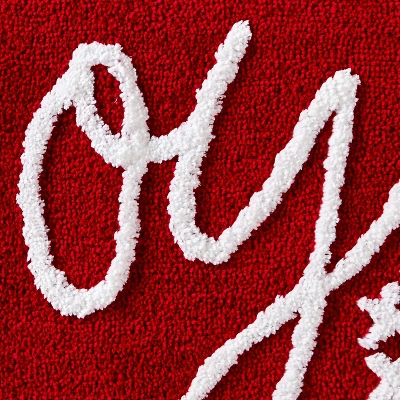 - Rectangular, tufted design with “Joy” and snowflakes